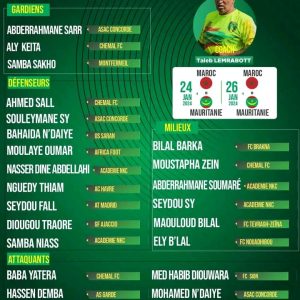 Le sélectionneur de l’équipe nationale U20 de la Mauritanie, Taleb Lemrabott a fait appel à 23 Mourabitounes pour un stage